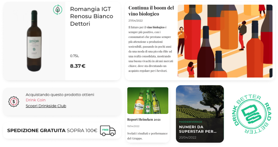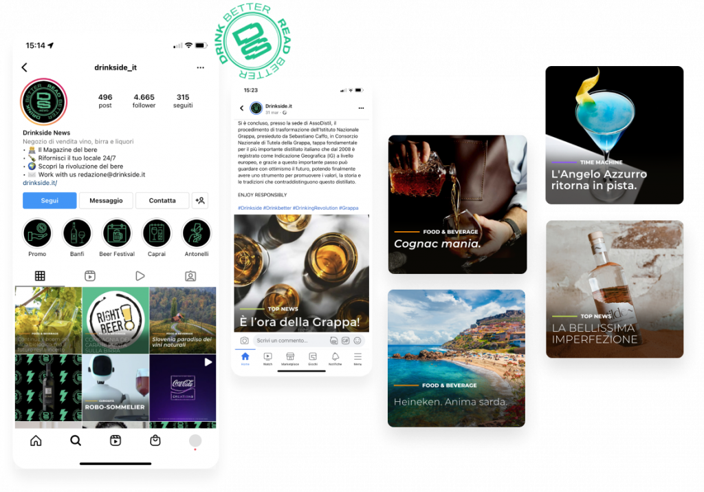 Tutta l’esperienza del gruppo storico romano, fondato nel 1933, grazie al supporto tecnologico e consulenziale di Next dà vita ad un mix di user experience e design per regalare al suo pubblico una navigazione unica e i pricing migliori del settore beverage. Tutto questo con il supporto costante di un magazine creato ad hoc per stimolare la curiosità degli acquirenti con curiosità e approfondimenti nel settore beverage in tutto il mondo. La divulgazione sui canali di social delle offerte per l’e-commerce e dei nuovi contenuti originali per il magazine hanno permesso di massimizzare l’efficacia di queste iniziative e di ottimizzare costi e ricavi. Lato ADV, le offerte create dal reparto commerciale di Drinkside, vengono trasformate in campagne che hanno performato incredibilmente fino a raggiungere un ROAS di 43x e ricavi del 4300%.