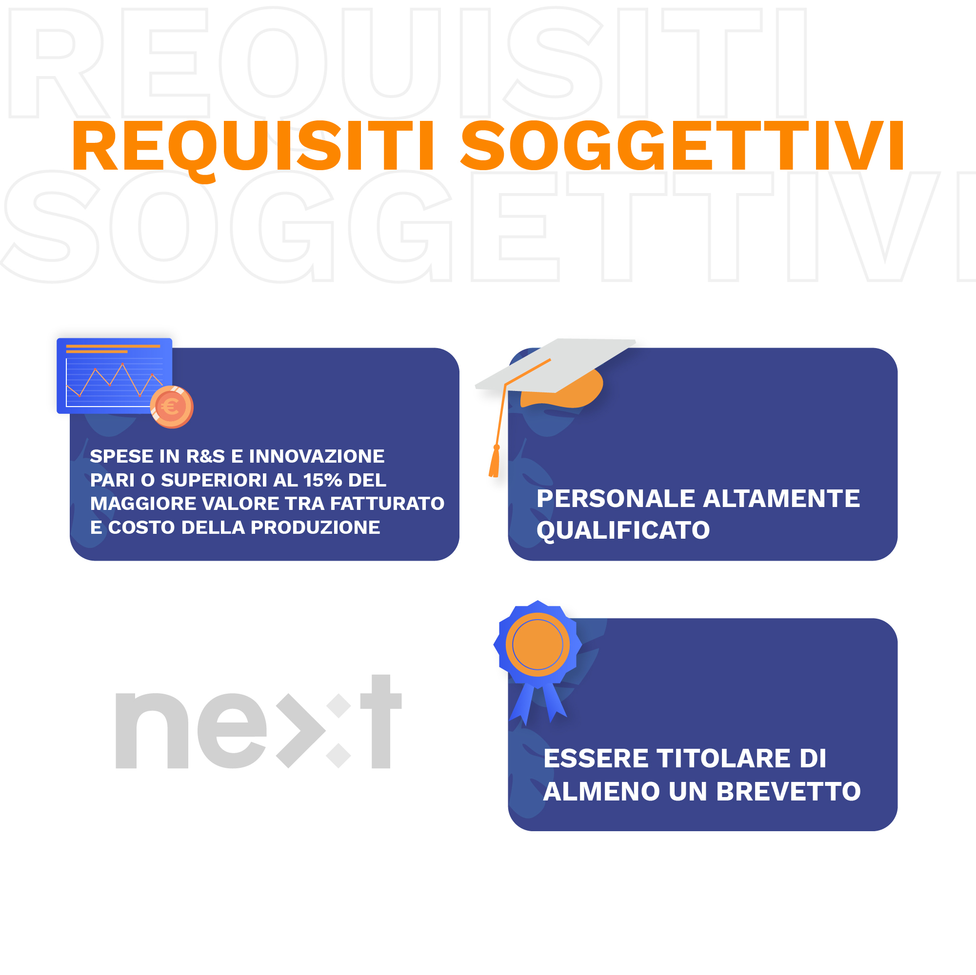 Oltre a quelli elencati poco sopra, si parla di startup innovativa solo nel caso in cui si rispetti 1 dei seguenti requisiti soggettivi sottostanti: